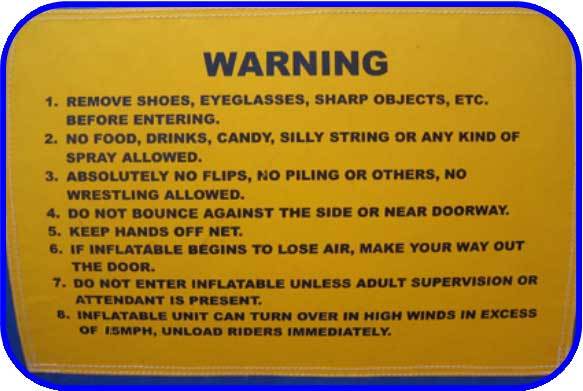 All of our inflatables are fire retardant and lead free, and meet or exceed ASTM and CPSIA standards.