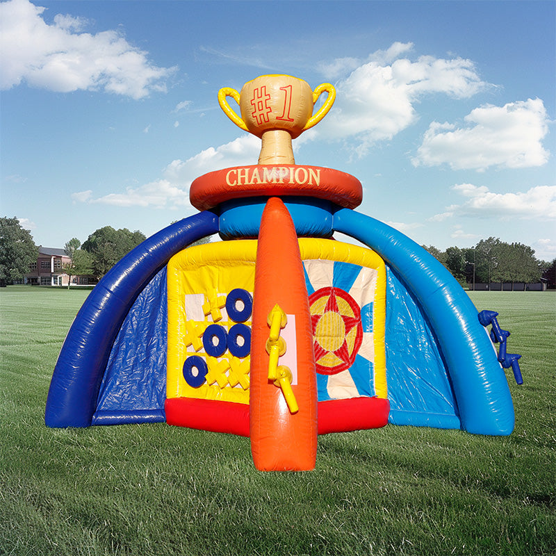 Features: All games have reliable commercial grade zippers with Velcro cover. All our games have integrated back flow flaps on deflation zippers to reduce air leak. Double-layer material sewn on stress areas like the bottom of the bounce house’s pillars, pop-ups, entrances, and high traffic floor seams to build the game stronger and safer. All seams are hemmed where applicable, No raw edges left outside.