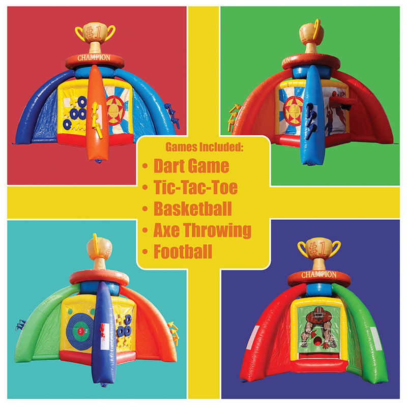 This 5-N-1 Game include Basketball Game, Football Game, Tic-Tac-Toe, Dart Game, and Axe Throwing Game. Basketball and Football is not included.