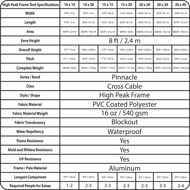 | PRODUCT NAME: | High Peak Frame Tent 20'x40' |