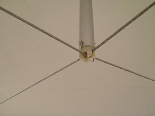 This 20'x30' high peak frame tent is set up using tension cross cables to support the center pole, no center pole on floor. This design provides a high peak elegant look and clear open floor. It also has fewer fittings and parts than traditional frame tents and pole tents, making it easier to setup and take down. A 20'x40' Marquee tent can be set up in 20 minutes with only 2 people.